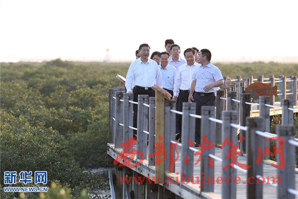 4月19日至21日,中共中央總書(shū)記、國(guó)家主席、中央軍委主席習(xí)近平在廣西考察。這是4月19日傍晚,習(xí)近平來(lái)到北海金海灣紅樹(shù)林生態(tài)保護(hù)區(qū)考察。(記者 謝環(huán)馳 攝)