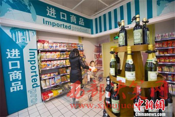 資料圖:山西太原,民眾正在超市選購進(jìn)口食品。張?jiān)茢z