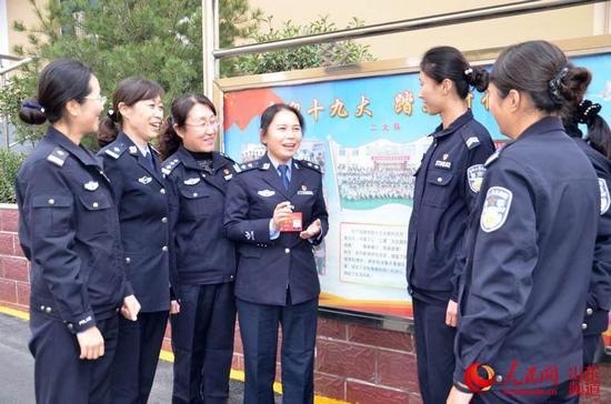 山東省女子強(qiáng)制隔離戒毒所醫(yī)療康復(fù)科科長李芙蓉向同事宣講十九大精神。劉桂珍 攝