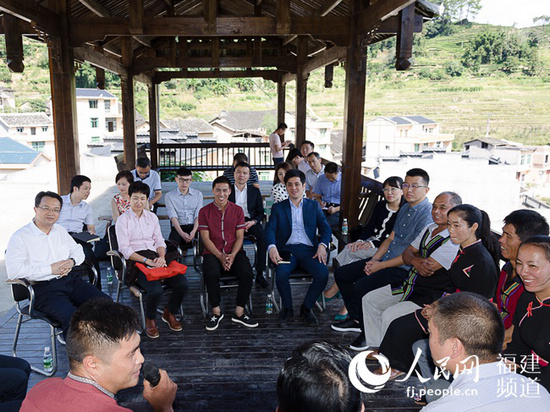 福建外事部門黨員干部與扶貧掛點(diǎn)村黨員一起學(xué)習(xí)黨的十九大精神。 王金龍 供圖