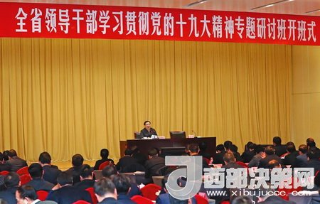 11月29日,全省領(lǐng)導(dǎo)干部學(xué)習(xí)貫徹黨的十九大精神專題研討班在西安開班。省委書記、省長胡和平出席開班式并講話。他強(qiáng)調(diào),要堅定不移貫徹習(xí)近平新時代中國特色社會主義思想,緊盯追趕超越目標(biāo),踐行“五個扎實”要求,落實好省第十三次黨代會提出的“五新”戰(zhàn)略任務(wù),確保十九大精神在陜西省落地生根、見到實效。