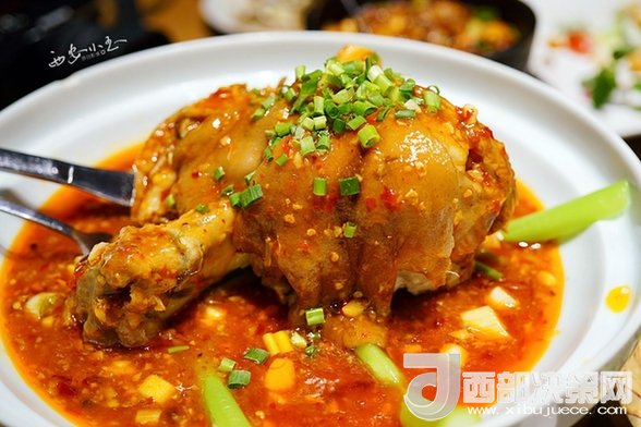 肘子燉得酥爛,辣辣的,吃起來一點(diǎn)兒也不膩了。