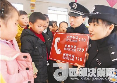 12月25日,浙江省臺(tái)州市公安局椒江分局下陳派出所民警深入轄區(qū)中小學(xué)校、幼兒園,開展防拐騙、消防安全、交通安全等防范教育,通過(guò)講解安全小常識(shí)、發(fā)放防范宣傳資料等方面知識(shí),提高學(xué)生和幼兒園小朋友安全意識(shí)和自我防范能力。圖為民警在教幼兒園小朋友如何撥打緊急求助電話。何文斌 攝(人民視覺)