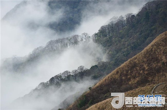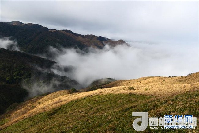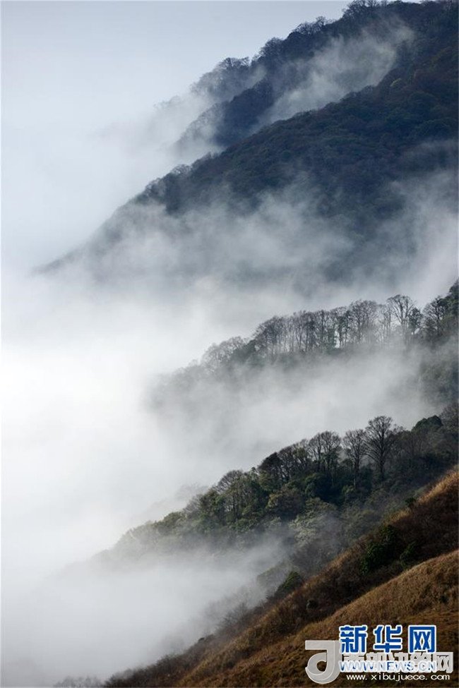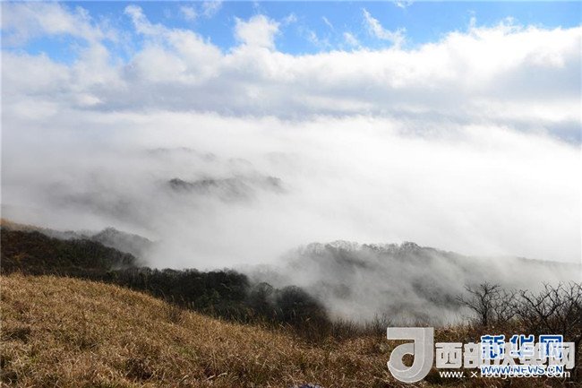 這是1月7日在貴州省黔東南苗嶺國家地質公園拍攝的云海景觀。寒冬時節(jié),位于貴州省黔東南州的苗嶺國家地質公園出現(xiàn)云海霧凇景觀,原始森林和草場在云海中若隱若現(xiàn),美若畫卷。(楊文斌攝)