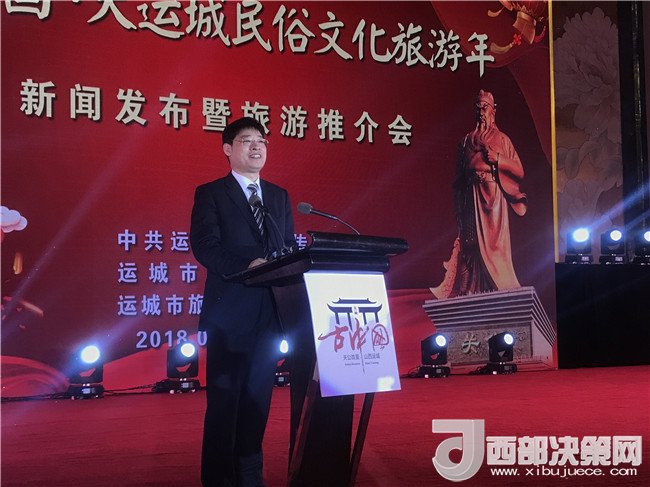 西部決策網(wǎng)-西部大開發(fā)訊(宋丹)1月9日,從山西運(yùn)城市在陜西西安市舉辦的2018“古中國(guó)·大運(yùn)城”民俗文化旅游年新聞發(fā)布暨旅游推介會(huì)獲悉,以“古中國(guó)·大運(yùn)城”為主題的山西運(yùn)城市2018民俗文化旅游年系列活動(dòng)全面啟動(dòng)。山西運(yùn)城市委常委、宣傳部長(zhǎng)王志峰出席新聞發(fā)布推介會(huì)并致辭。運(yùn)城市人民政府副市長(zhǎng)陳竹琴出席發(fā)布會(huì)。