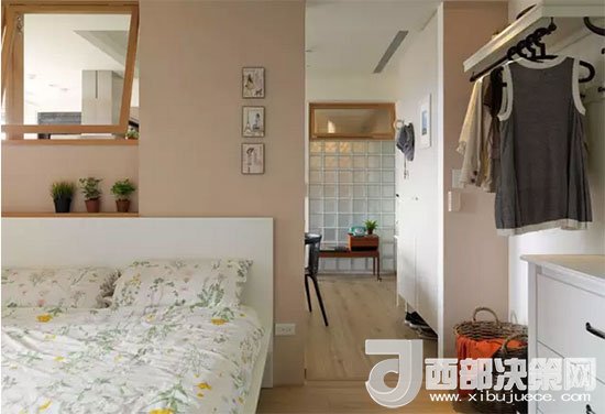看得出臥室在哪兒嗎?沒錯,臥室就在餐區(qū)和廚房的一側(cè),墻上的窗戶同樣也是為了增加采光和空氣的流通。