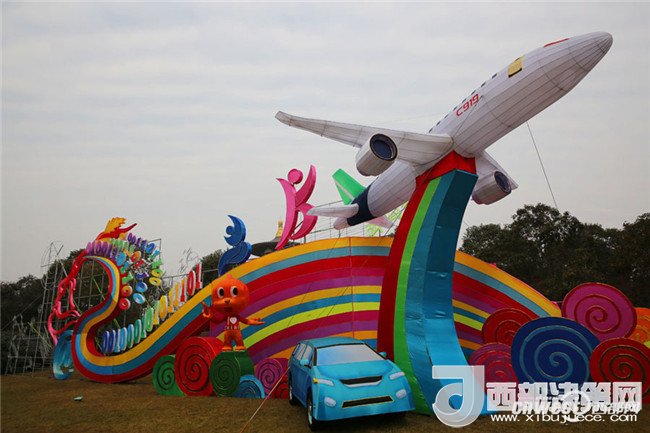 中國自主設(shè)計(jì)研制的C919國產(chǎn)大型客機(jī)也做成了彩燈,展示國家高精尖科技實(shí)力。