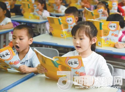 2017年8月31日,安徽合肥少兒藝術學校一年級學生在開學預備課上熟悉新編語文教材。(記者張端攝)