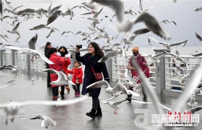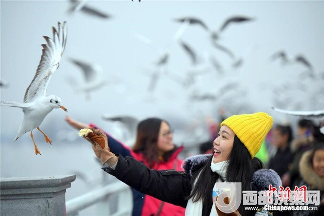 2月4日,一名女孩穿著厚厚的冬裝在昆明滇池邊給紅嘴鷗喂食。當(dāng)日,受較強冷空氣影響,“春城”昆明最低氣溫下降至-3℃。天氣雖然寒冷,卻抵擋不住市民和游客前來滇池觀賞、喂食越冬紅嘴鷗的熱情。中新社記者李進(jìn)紅攝