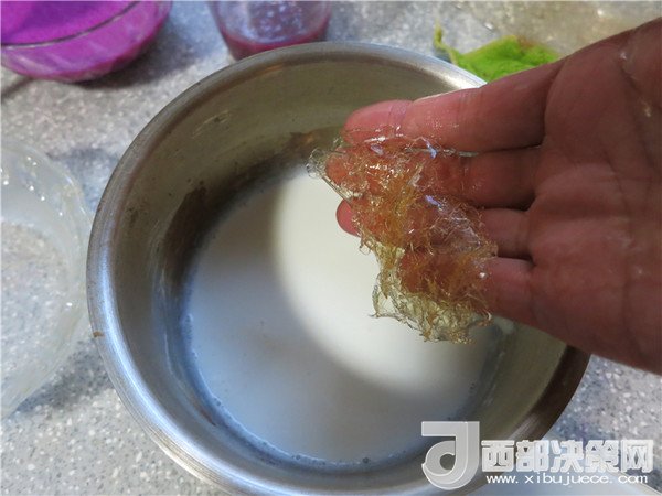 4.必須是在一種果汁凝固后才可以將另一種汁加入,否則容易混色。