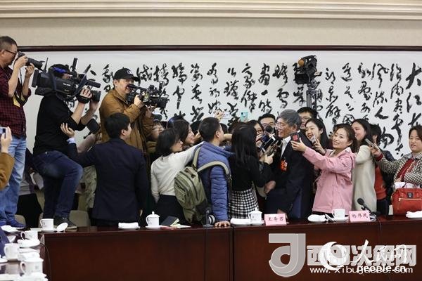 楊偉民接受記者“圍堵”采訪。(中國經(jīng)濟(jì)周刊記者肖翊攝)