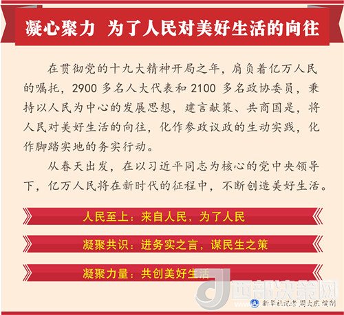 在貫徹黨的十九大精神開(kāi)局之年,肩負(fù)著億萬(wàn)人民的囑托,2900多名人大代表和2100多名政協(xié)委員,秉持以人民為中心的發(fā)展思想,建言獻(xiàn)策、共商國(guó)是,將人民對(duì)美好生活的向往,化作參政議政的生動(dòng)實(shí)踐,化作腳踏實(shí)地的務(wù)實(shí)行動(dòng)。