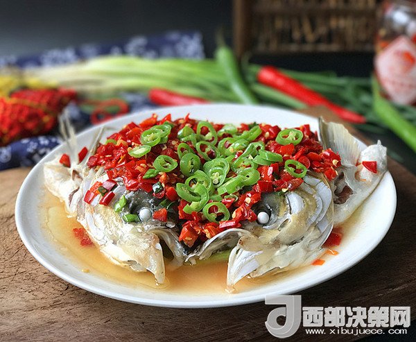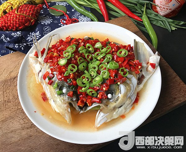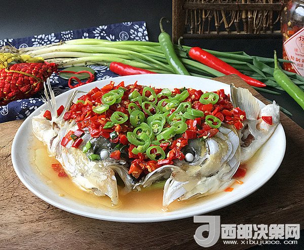 剁椒魚(yú)頭,相信很多人跟我一樣大愛(ài)啊,吃起來(lái)鮮辣適口、魚(yú)肉細(xì)嫩、肥而不膩、口感軟糯。制作剁椒魚(yú)頭,一般會(huì)選用花鰱魚(yú)(許多地方也叫鳙魚(yú)、胖頭魚(yú)或是大頭魚(yú))的魚(yú)頭部分;它肉質(zhì)細(xì)嫩、營(yíng)養(yǎng)豐富且低脂肪,除含有蛋白質(zhì)和鈣磷鐵質(zhì)等眾多微量元素外,還含有維生素B1,它可是魚(yú)肉當(dāng)中所缺乏的卵磷脂,常吃可增強(qiáng)記憶、思維和分析能力,讓人變得聰明;除此之外魚(yú)頭還富含多種不飽和脂肪酸,對(duì)腦的發(fā)育尤為重要,可使大腦細(xì)胞異?;钴S,故使推理、判斷力極大增強(qiáng);魚(yú)鰓下邊的肉呈透明膠狀,里面富含膠原蛋白,能夠?qū)谷梭w老化及修補(bǔ)身體細(xì)胞組織;因此常吃魚(yú)頭不僅可以健腦、延緩腦力衰退還有美容養(yǎng)顏的功效了。