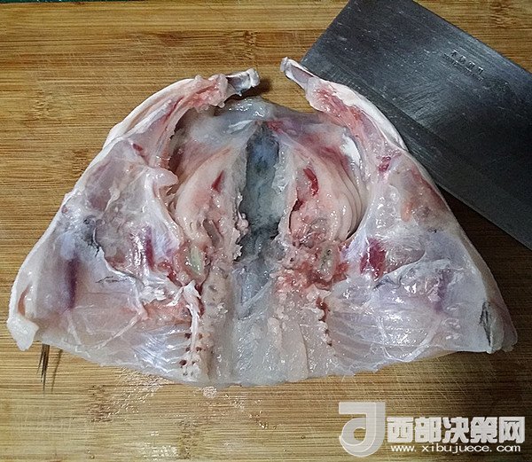 3.處理魚(yú)時(shí)注意將貼在魚(yú)肚子及魚(yú)頭里的黑膜全部撕掉并清洗干凈,要不吃起來(lái)會(huì)有很重的“魚(yú)腥味和土腥味”,然后瀝干水分后用刀將魚(yú)頭小心地劈開(kāi)但不要劈斷、用蔥姜、料酒腌制半小時(shí)左右,可進(jìn)一步去腥增味