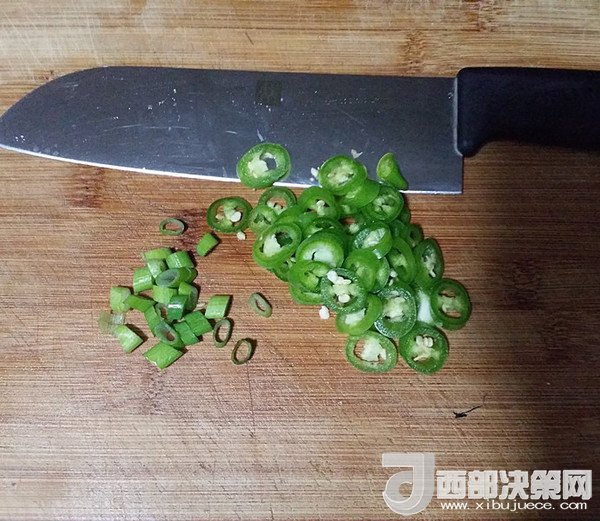 10.趁蒸魚(yú)的時(shí)候、將杭椒和蔥葉洗凈切好