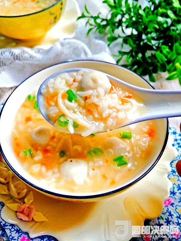 做給寶寶吃的蔬菜粥,寶寶不愛(ài)吃蔬菜,這不像方法做給他吃,胡蘿卜切丁,加入肉丸熬煮鮮美又營(yíng)養(yǎng)