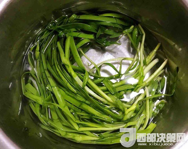 5.韭菜在開(kāi)水中輕輕焯一下立即放入冷水中過(guò)涼