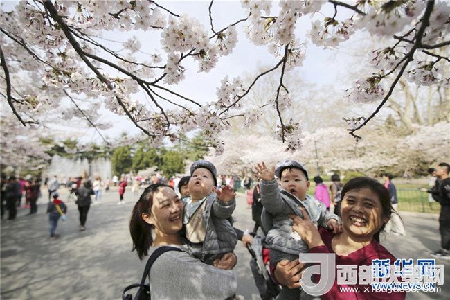 4月11日,游人在山東青島中山公園觀賞櫻花。 新華社發(fā)(黃杰顯 攝)