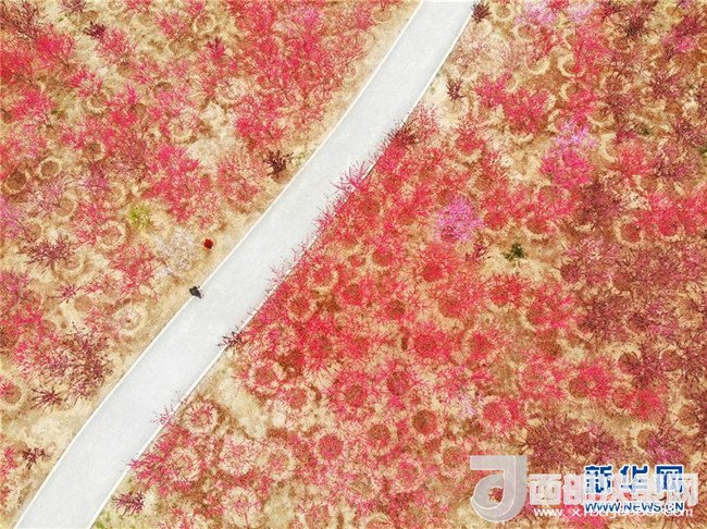 4月11日,游客在河北省石家莊市滹沱河風(fēng)景區(qū)賞花游玩。 新華社發(fā)(劉沛然攝)