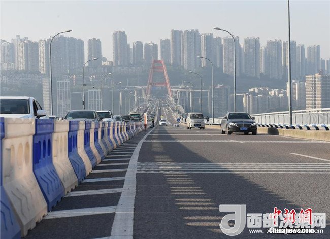 當(dāng)日,重慶開通全國首創(chuàng)環(huán)道內(nèi)順逆融合車道,不僅是向時間、空間要通行率,也是在環(huán)道形成的“順時針”和“逆時針”兩種通行方式,共同存在的“共享位移轉(zhuǎn)換道”基礎(chǔ)上提高車流量通行率。