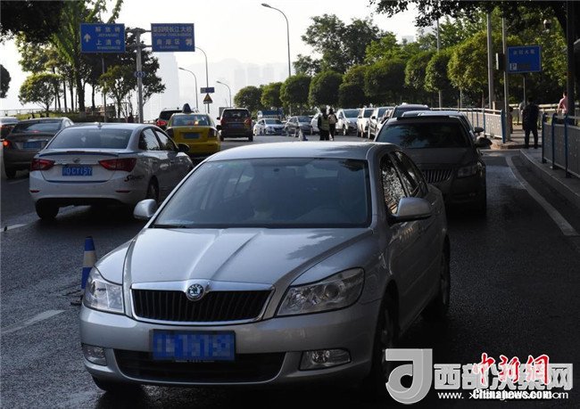 4月17日,重慶市交巡警總隊在該市菜園壩大橋去往兩路口方向設(shè)置了“共享位移轉(zhuǎn)換道”,為市民早高峰出行節(jié)省時間。