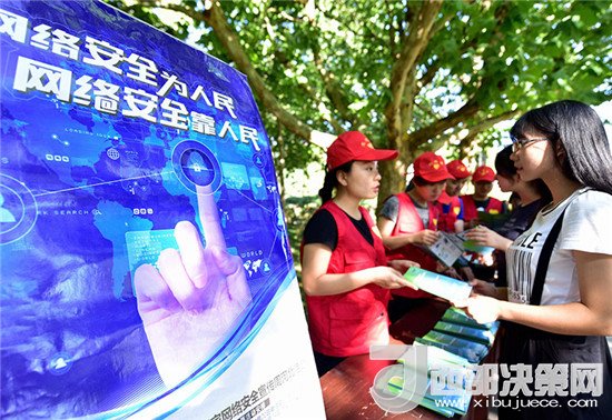 河北省廊坊市安次區(qū)網(wǎng)信辦工作人員和志愿者向?qū)W生們發(fā)放網(wǎng)絡安全宣傳折頁,倡導廣大師生提高網(wǎng)絡安全意識,共同維護網(wǎng)絡社會秩序(2017年9月19日攝)。新華社記者 王曉 攝