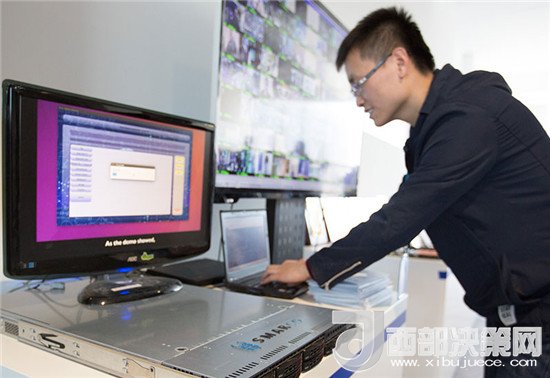 在北京智能計算產(chǎn)業(yè)研究院舉行的發(fā)布會上,工作人員在現(xiàn)場演示高通量人工智能一體機的實際應用(2017年12月6日攝)。新華社記者 金立旺 攝