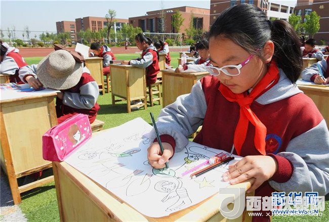 4月19日,安徽省合肥市蜀山區(qū)井崗鎮(zhèn)新城小學(xué)學(xué)生參加“善待地球,童繪藍(lán)天——我與地球的故事”繪畫(huà)活動(dòng)。新華社發(fā)(葛宜年 攝)