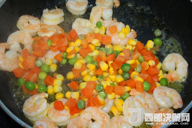 3.蔬菜粒用開(kāi)水焯一下?lián)瞥隹馗蓚溆?/div>