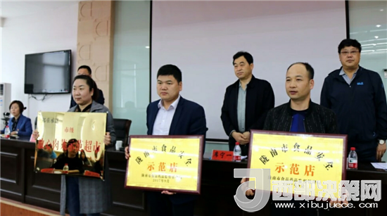 會(huì)上,席寧一宣讀了《隴南市食藥監(jiān)局關(guān)于命名2017年市級食品安全示范街示范店和示范學(xué)校食堂的通知》;李寶成宣讀了《隴南市食藥監(jiān)局關(guān)于命名2017年市級放心肉菜示范超市的通知》;為獲得全市2017年度食品安全示范店、農(nóng)產(chǎn)品示范超市的兩當(dāng)縣開元超市(農(nóng)貿(mào)市場店)、兩當(dāng)縣秦南農(nóng)產(chǎn)品電商體驗(yàn)中心、兩當(dāng)縣川渝九品火鍋店頒發(fā)了獎(jiǎng)牌;城關(guān)鎮(zhèn)、金洞鄉(xiāng)、農(nóng)牧局、教育局分別作了交流發(fā)言;縣食安辦主任、食藥局長彭小蘭作了工作報(bào)告;與各鄉(xiāng)鎮(zhèn)、工作站、食安委各成員單位簽訂了《2018年兩當(dāng)縣食品藥品安全目標(biāo)管理責(zé)任書》。