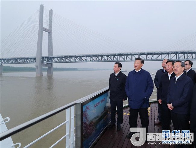 為了開好這次座談會,4月24日至25日,習近平先后在湖北省委書記蔣超良、省長王曉東,湖南省委書記杜家毫、省長許達哲陪同下,深入湖北宜昌市和荊州市、湖南岳陽市以及三峽壩區(qū)等地,考察化工企業(yè)搬遷、非法碼頭整治、江水污染治理、河勢控制和護岸工程、航道治理、濕地修復、水文站水文監(jiān)測工作等情況,實地了解長江經(jīng)濟帶發(fā)展戰(zhàn)略實施情況。