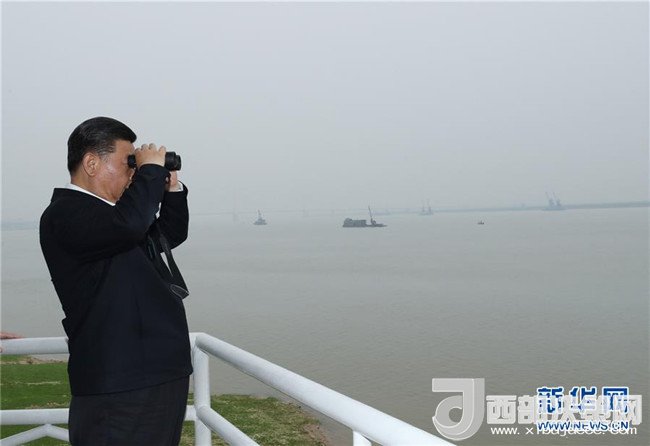 4月26日下午,中共中央總書記、國家主席、中央軍委主席習近平在武漢主持召開深入推動長江經(jīng)濟帶發(fā)展座談會并發(fā)表重要講話。這是座談會前,習近平于25日下午在岳陽城陵磯水文站考察。新華社記者 謝環(huán)馳 攝