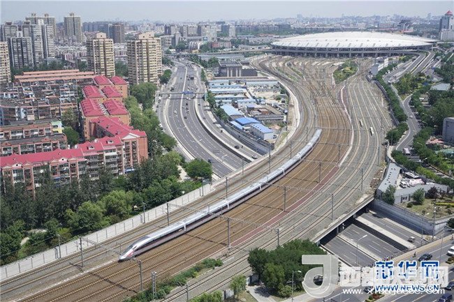 中國標準動車組“復(fù)興號”G123次列車從北京南站首發(fā)(2017年6月26日攝)。新華社記者邢廣利攝
