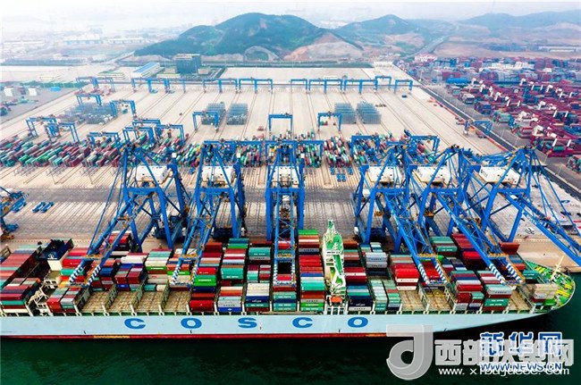 集裝箱船在青島港全自動化集裝箱碼頭靠泊作業(yè)(2017年5月10日攝)。青島港全自動化集裝箱碼頭是我國完全自主創(chuàng)新并設(shè)計建設(shè)的亞洲首個、全球領(lǐng)先的全自動化碼頭。新華社記者朱崢攝