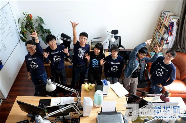 陜西第六鏡科技文化有限責任公司運營團隊的成員在工作室合影(2017年4月17日攝)。兩名西北工業(yè)大學自動化學院的學生在2014年本科尚未畢業(yè)時就一起組建了“第六鏡”。2017年1月,“第六鏡”突破了技術(shù)瓶頸,其人臉識別技術(shù)也取得了國際權(quán)威評測體系的認可,達到了國際領(lǐng)先水平。新華社記者劉瀟攝