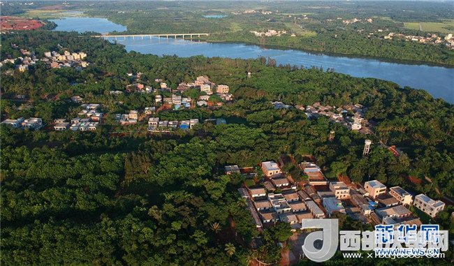 海口市瓊山區(qū)云龍鎮(zhèn)的村鎮(zhèn)掩映在綠樹和濕地中(5月30日無人機(jī)拍攝)。