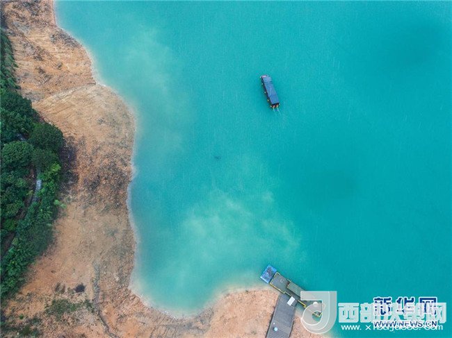 浙江省麗水市云和縣仙宮湖景區(qū)的電動(dòng)畫舫船行駛在湖區(qū)的水面上,景區(qū)用電動(dòng)游船替代了傳統(tǒng)的柴油船(5月31日無(wú)人機(jī)拍攝)。