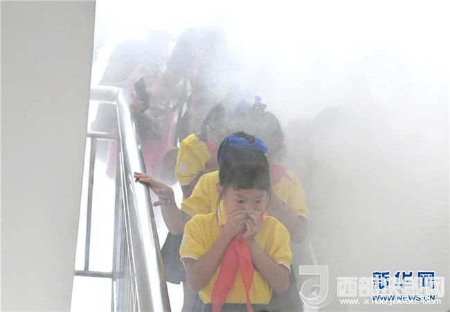 6月2日,孩子和家長(zhǎng)們?cè)趶V西南寧市青秀區(qū)公安消防大隊(duì)柳沙中隊(duì)參加消防疏散演習(xí)。