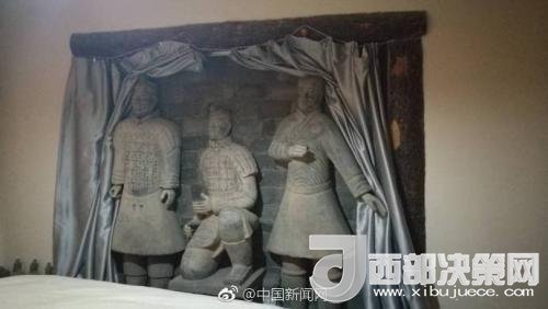 他告訴記者,“房子并不是我們裝修的,是原來房東做的”。“他是一個老西安人。從2008年就買下這處房子,因為他非常喜歡兵馬俑,就在裝修中加了很多兵馬俑元素進(jìn)去。”