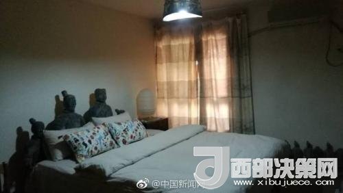 臥室床頭的兩位俑頗為顯眼。微博截圖