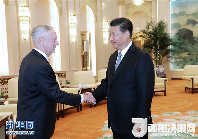 國家主席習(xí)近平27日在人民大會(huì)堂會(huì)見了來訪的美國國防部長馬蒂斯。