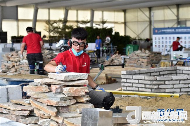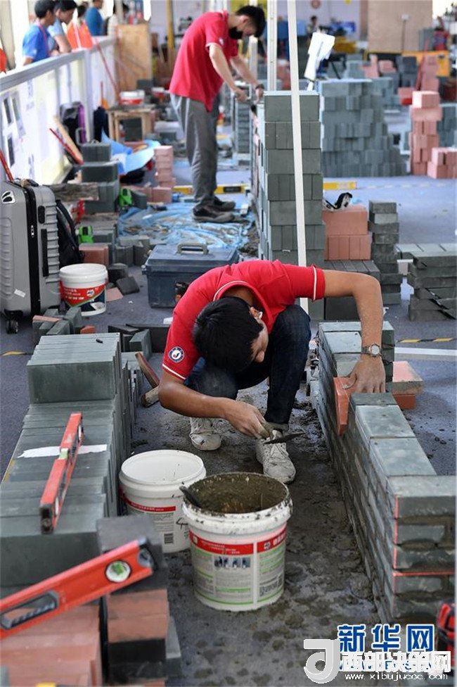 在第45屆世界技能大賽全國選拔賽廣東賽區(qū)比賽現(xiàn)場,選手們在砌筑項目中進(jìn)行操作(6月25日攝)。新華社記者 梁旭 攝