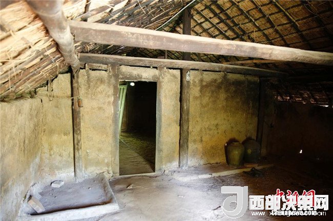 圖為船型屋內(nèi)光線幽暗。屋中間立三根叫“戈額”的木柱象征男人;兩邊立6根較矮的柱子,黎語叫“戈定”,象征女人。 中新社記者 王曉斌 攝