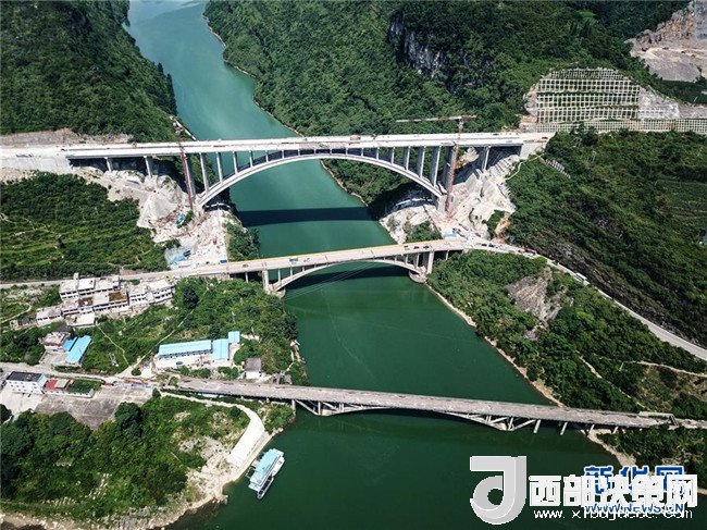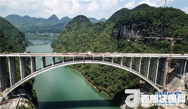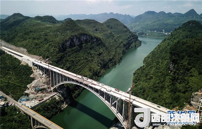 貴州織普高速公路控制性工程——夜郎湖特大橋日前實現(xiàn)全線貫通,預(yù)計本月底可全面建成。該橋由貴州橋梁建設(shè)集團于2016年5月開始施工,全長391.4米,拱圈凈跨徑210米。據(jù)了解,織普高速全長約52公里,建成后由織金縣到普定縣的車程可從原來的2.5小時縮短到35分鐘,將大幅提高通行效率,進一步推動沿線經(jīng)濟發(fā)展。新華社記者 陶亮 攝