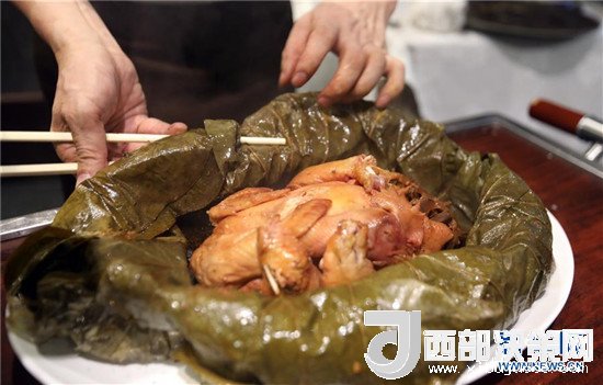 杭州酒家老板吳瑞康為客人端上自己親自制作的“叫化雞”(6月16日攝)。新華社記者 李鵬 攝