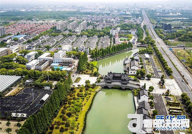 這是浙江奉化滕頭村風(fēng)貌(4月22日無人機拍攝)。新華社記者 殷剛 攝
