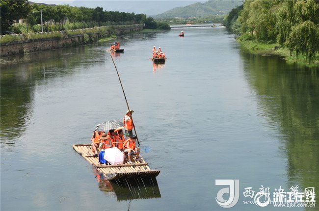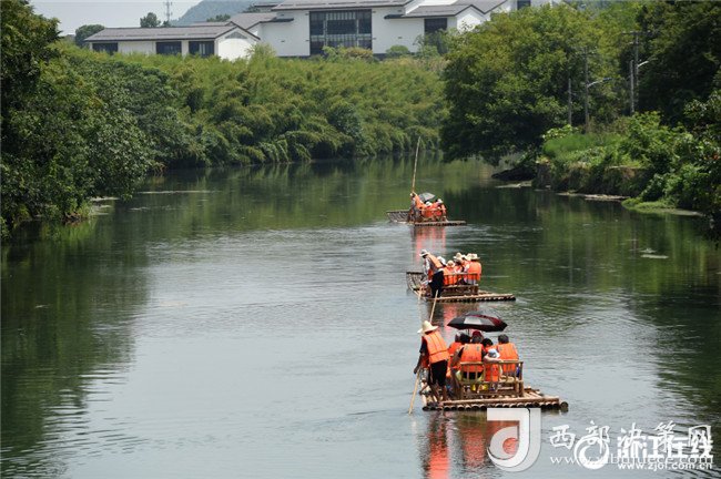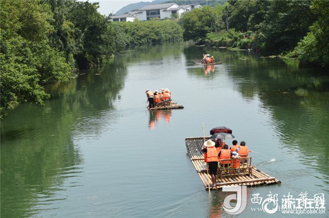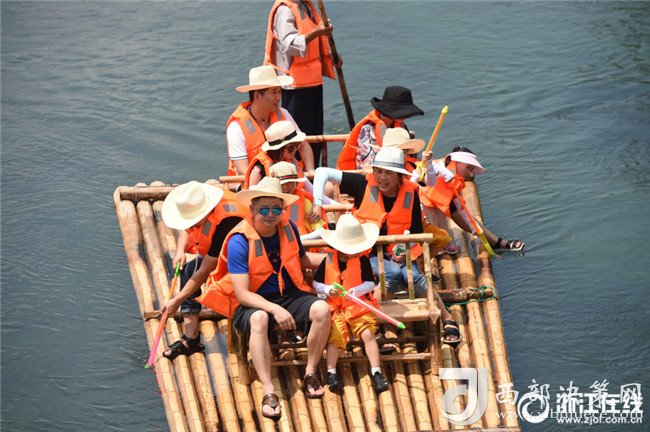 8月9日,杭州持續(xù)高溫,最高氣溫達36℃,酷熱難熬,在余杭雙溪漂流景區(qū),游客人數驟增,他們乘竹筏享受水上清涼。(浙江在線記者 吳元峰 攝)