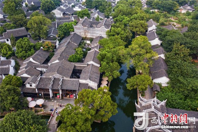 8月11日,航拍無錫惠山古鎮(zhèn),典型的江南民居錯落有致,透出古樸韻味。