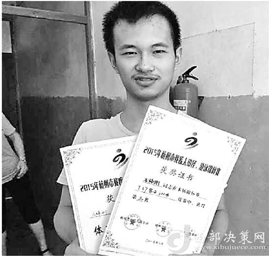 小學、初中成績名列前茅,考入重點高中,成績同樣優(yōu)秀。不僅如此,煒剛還參加了2012年杭州市青少年殘疾人田徑、游泳、射擊錦標賽,2015年杭州市殘疾人田徑、游泳錦標賽,努力奔跑的他獲得了一個又一個好成績,捧回了一張又一張獎狀。