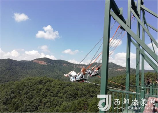 懸崖秋千位于景區(qū)南區(qū),與玻璃觀景臺相連,高70余米,秋千蕩起,在盡情吶喊的同時,不同視角的獨特山谷樣貌盡收眼底。